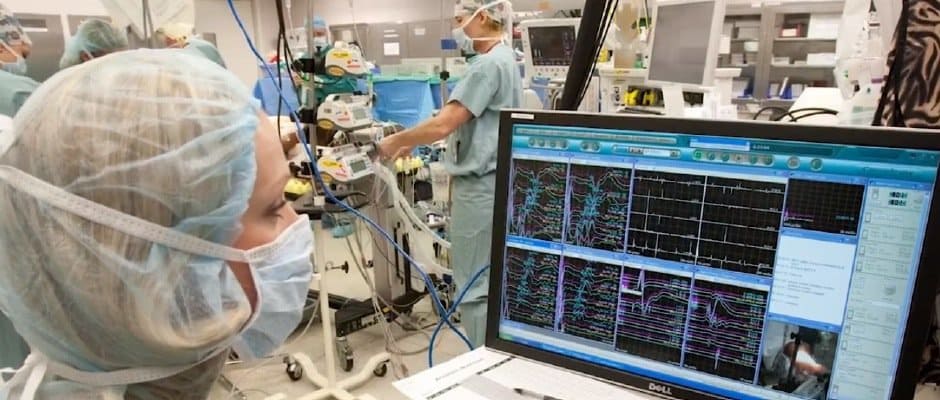 - Use of apparatus for intraoperative monitoring of important brain functions and recognition of very important nerve structures in the surgical zone, and above all of the cranial nerves