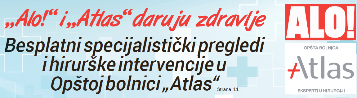 Coupons will be published in “Alo!” daily newspapers from Monday to Friday, and on Saturdays a joker (who changes any coupon). Readers should cut out coupons, fill in the coupon and send it together with the medical documentation to the “Alo!” editorial office. The medical documentation is not returned to the participants, it is kept in the archives of the Atlas Hospital until the end of the competition Alo and Atlas donate health (until January 2021), after which it will be destroyed.