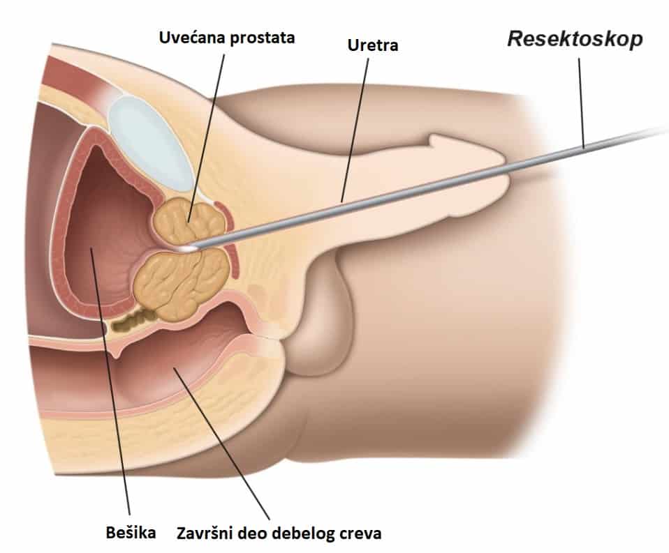 After appropriate anesthesia, a resectoscope is placed through the urethra, which allows the intervention to be performed without any incision or subsequent scarring. The prostate tissue is resected with an electric knife until the central part of the gland is removed. This formation is called an adenoma, benign or non-cancerous growth. A special fluid is placed through a resectoscope and the bladder is rinsed so that the surgeon has a clear insight into the flow through the urethra. Each piece of excised prostate tissue is placed in the bladder, from which it is removed with an endoscope at the end of the operation, and then sent for pathohistological examination. After the intervention, a catheter is placed and the bladder is rinsed. This helps to take care of the bleeding that normally occurs.