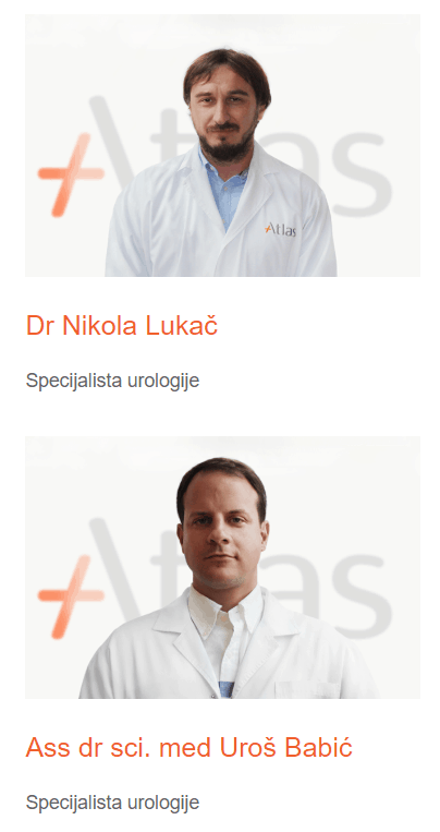 Urology specialists Dr. Nikola Lukac and Dr. Uros Babic perform all types of urological interventions and operations in the Atlas General Hospital.